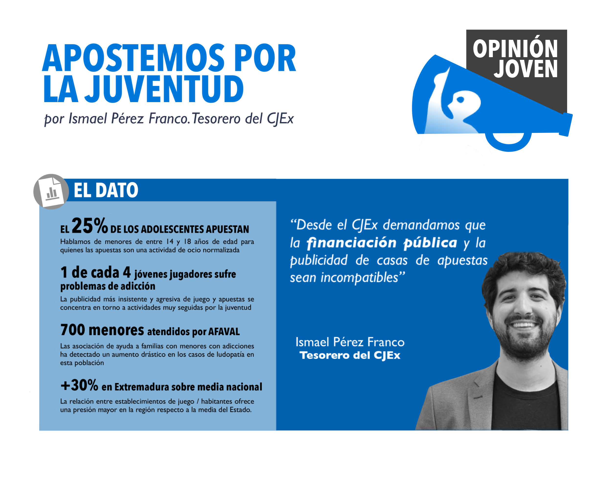 por Ismael Pérez Franco, Tesorero del CJEx El día 23 de Diciembre desde el Consejo de la Juventud de Extremadura (CJEx) dimos el pistoletazo de salida a la campaña titulada