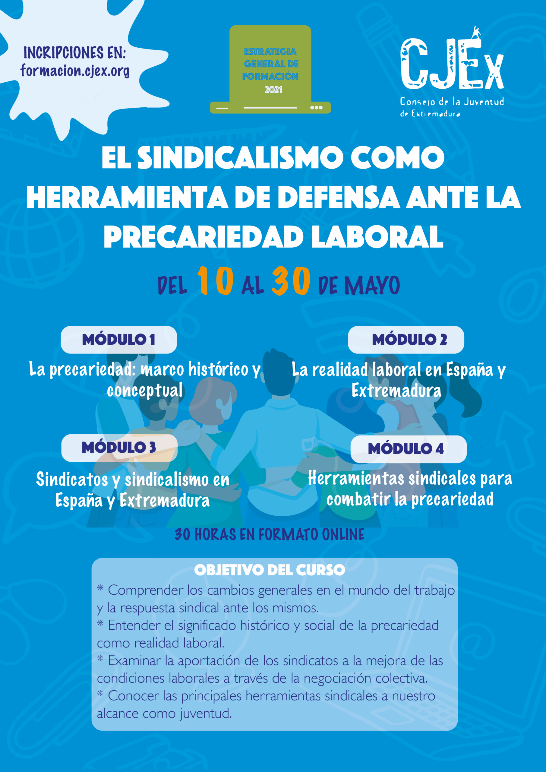 Aquí puedes encontrar información detallada del programa de formación del mes de mayo. Inscripciones en la plataforma de formación previo registro en ella. EL SINDICALISMO COMO HERRAMIENTA DE DEFENSA ANTE LA PRECARIEDAD
