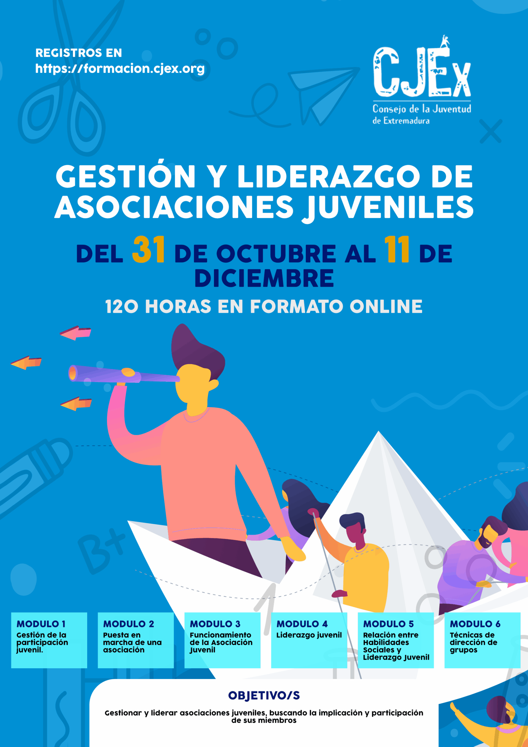 Hola. Te presentamos la nueva acción formativa online que hemos preparado en el Consejo de la Juventud de Extremadura para este mes de octubre. Se trata de un curso sobre Gestión