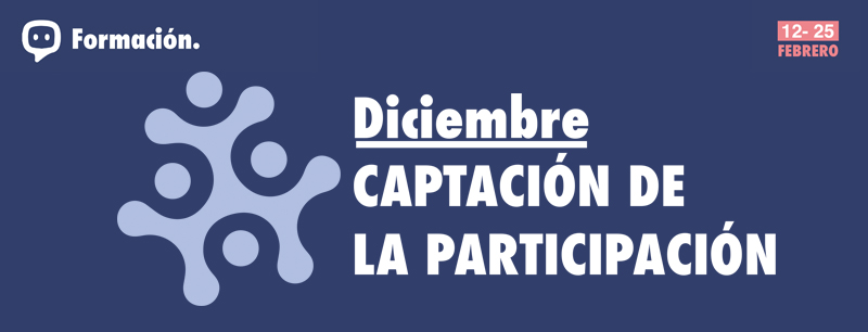 NUEVA FORMACIÓN «CAPTACIÓN DE LA PARTICIPACIÓN» Preparamos nuevo curso online y gratuito, con una duración de 16 horas. Comienza el 2 de diciembre y acaba el 16. Los objetivos de