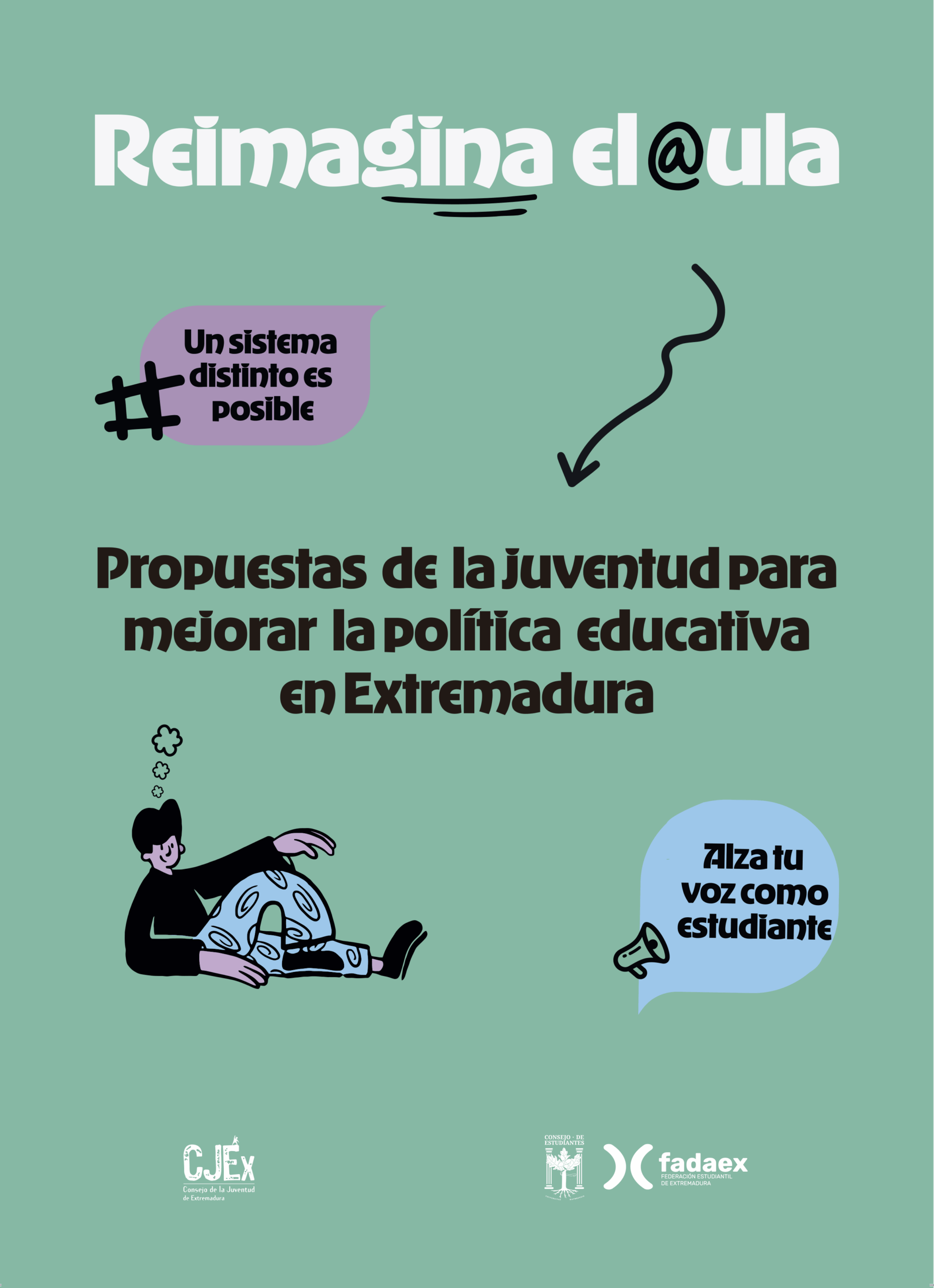 El documento “Reimagina el Aula: Propuestas de la juventud para mejorar la política educativa en Extremadura” representa el resultado de un intenso proceso participativo donde la voz de decenas de jóvenes extremeños ha sido protagonista en la construcción de un diagnóstico y una batería de propuestas para transformar la educación de la región. Coordinado por el Consejo de la Juventud de Extremadura, con colaboración de la Federación Estudiantil de Extremadura y el Consejo de Estudiantes de la Universidad de Extremadura, este informe recoge reflexiones y propuestas formuladas por estudiantes universitarios y no universitarios, sobre los principales retos y oportunidades del sistema educativo extremeño.